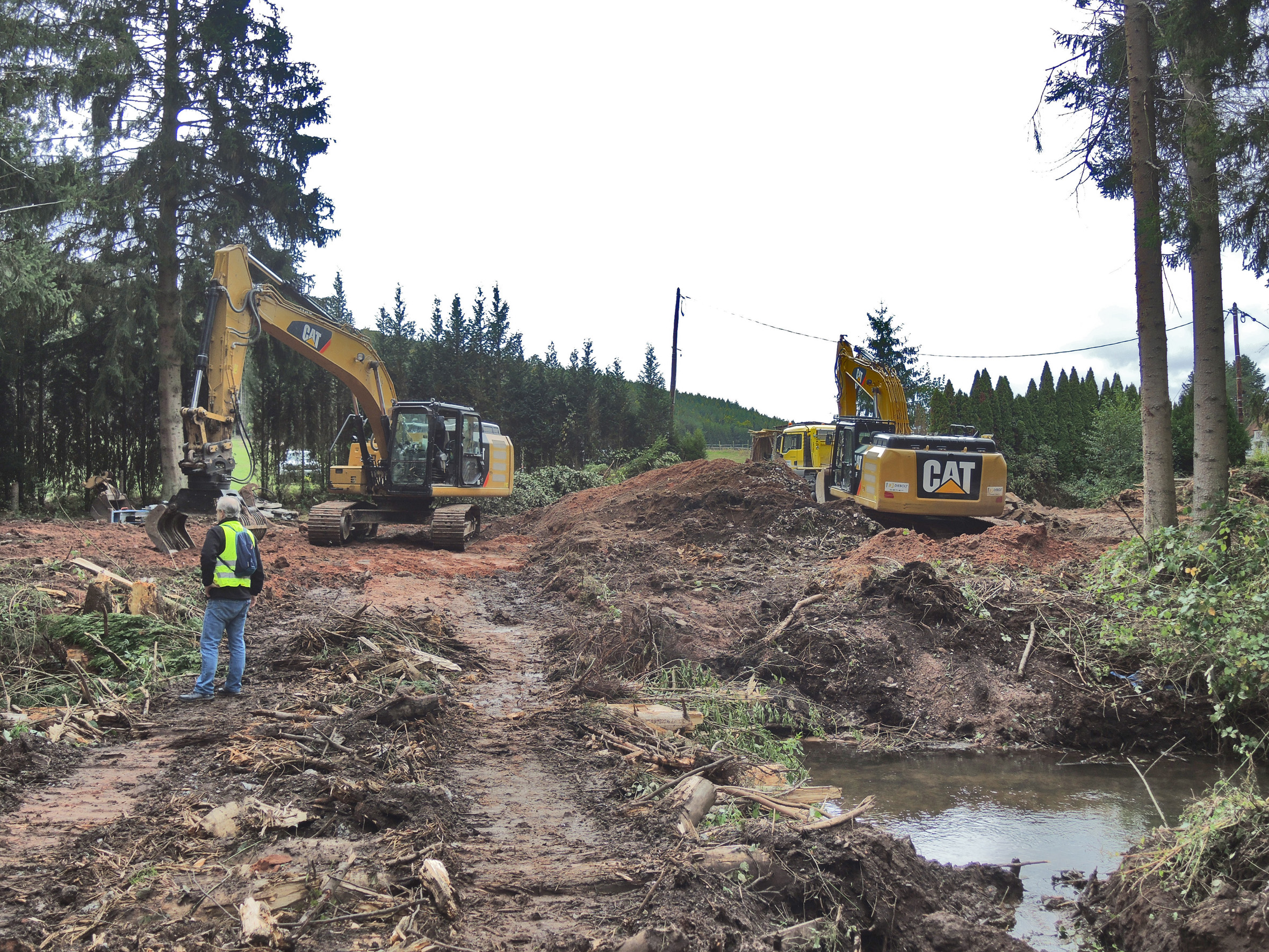 Un chantier de démolition est en cours sur un site CSA traversé par la Moder à Wingen-sur-Moder. Il constitue la première phase d’une opération de restauration complète d’un biotope alluvial complétement artificialisé.