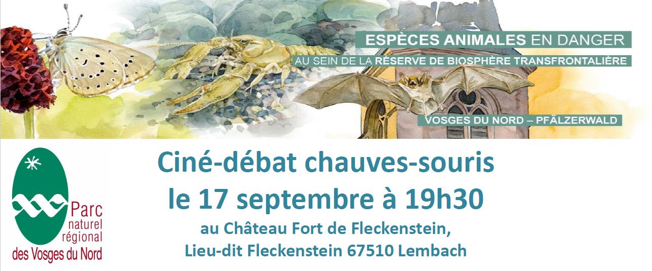 Le Parc Naturel Régional des Vosges du Nord organise un ciné-débat sur le thème des chauves-souris à destination du grand public, le 17 septembre à 19h30 au Château de Fleckenstein, Lieu-dit Fleckenstein 67510 Lembach