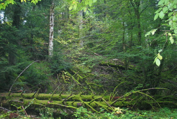 La hêtraie-sapinière présente un bon état de conservation, elle abrite une grande diversité de classes d’âge et un ratio de bois mort intéressant. Rappelons que ce bois mort joue un rôle crucial pour l’accomplissement du cycle de vie de nombreuses espèces. La présence encore peu marquée de très gros bois (de diamètre supérieur à 67,5 cm) témoigne vraisemblablement de l’impact de la gestion passée. Le degré de naturalité important de la forêt de la RNR de Wegscheid sera probablement gage d’une bonne résilience face aux changements à venir.